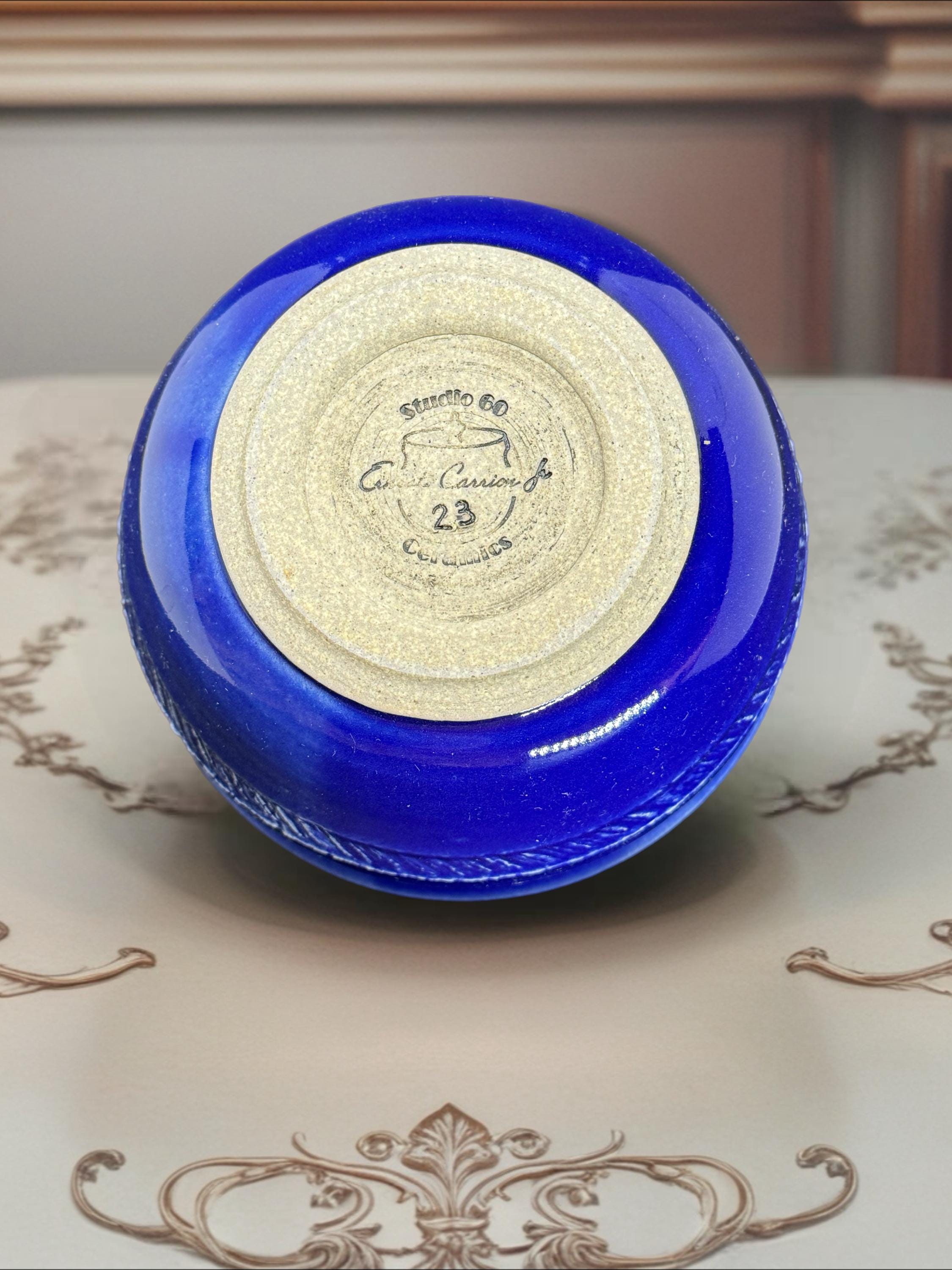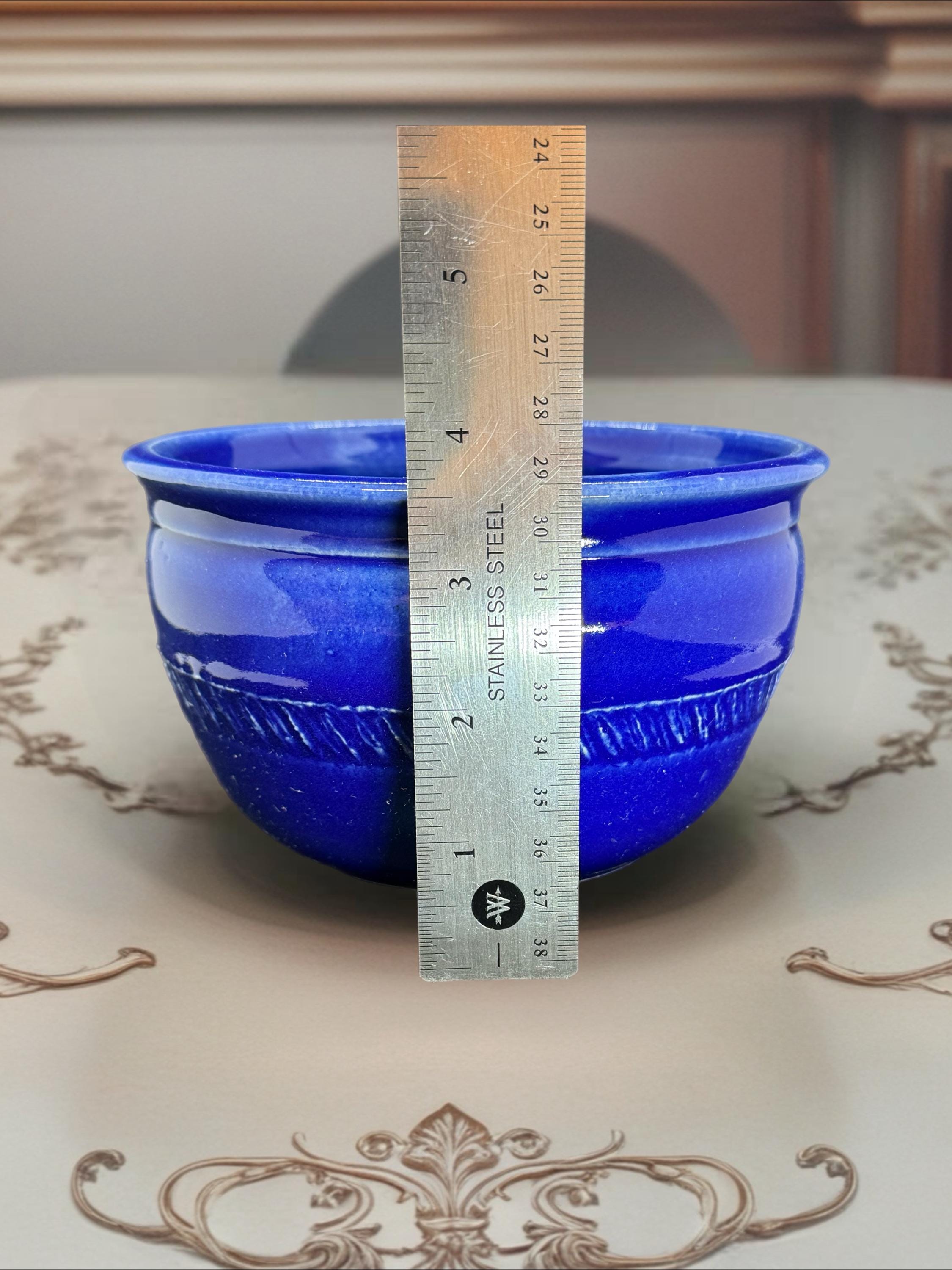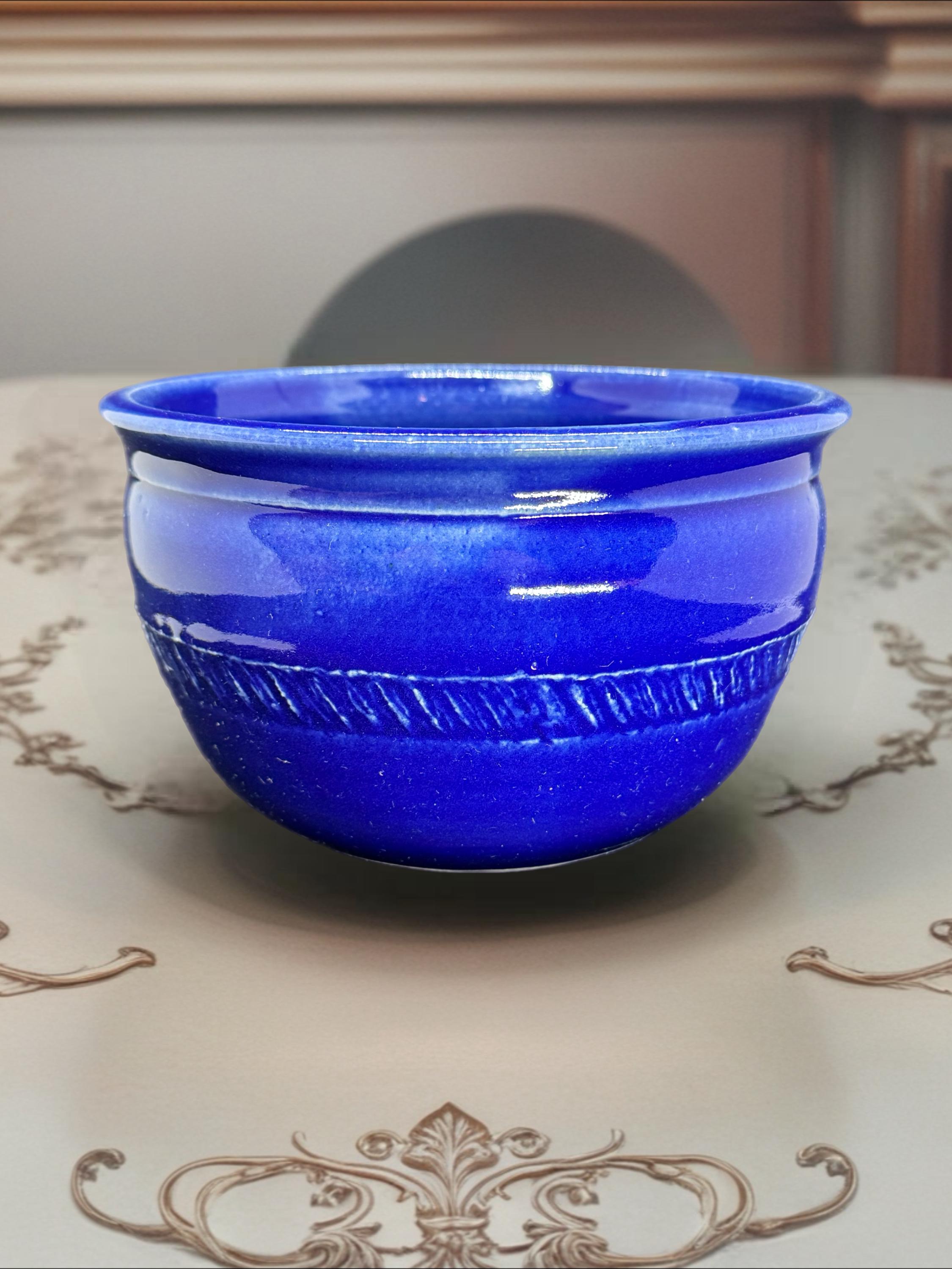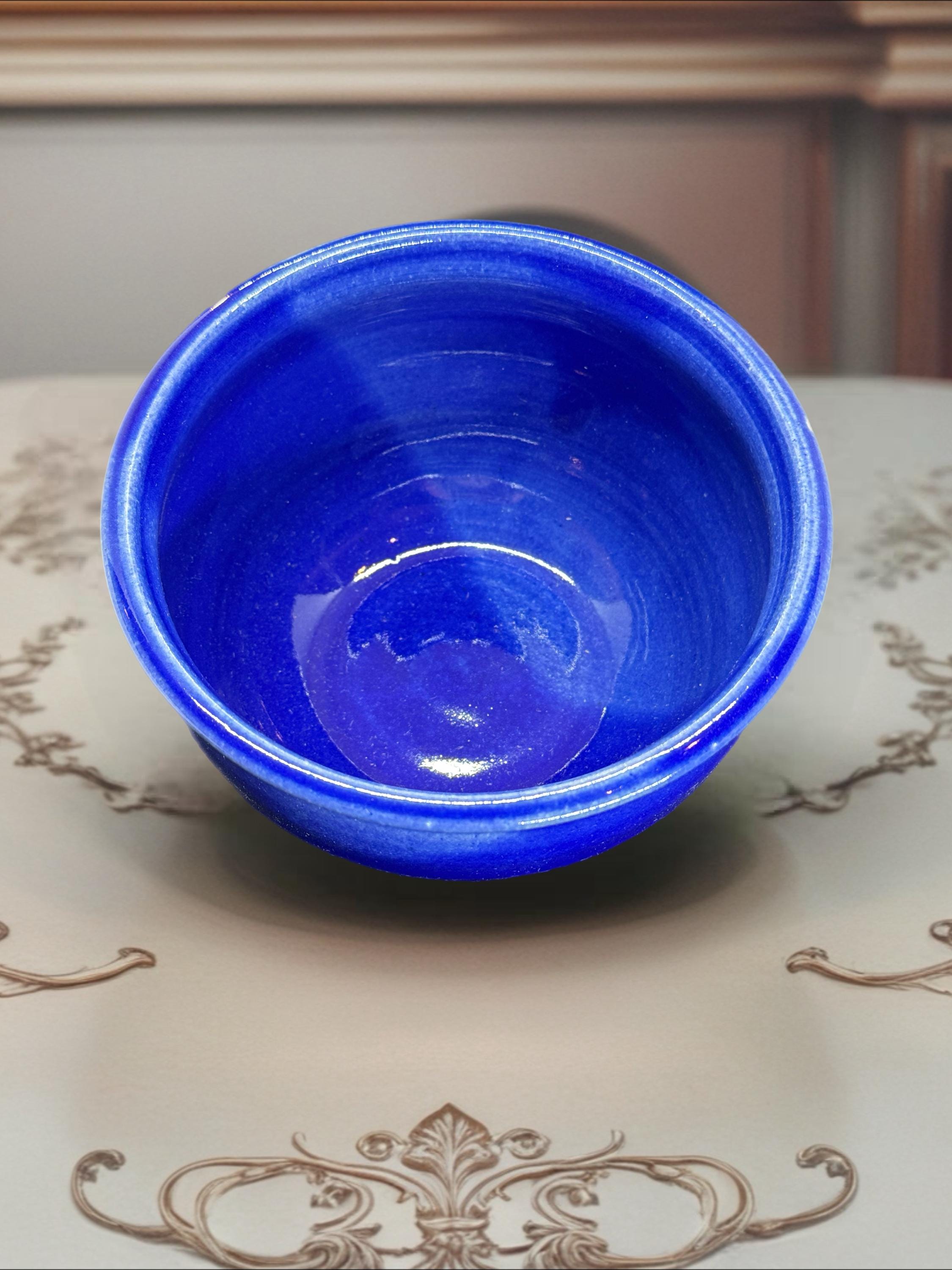 Handmade Blue Pottery Bowl: Glossy Glaze, Food Safe