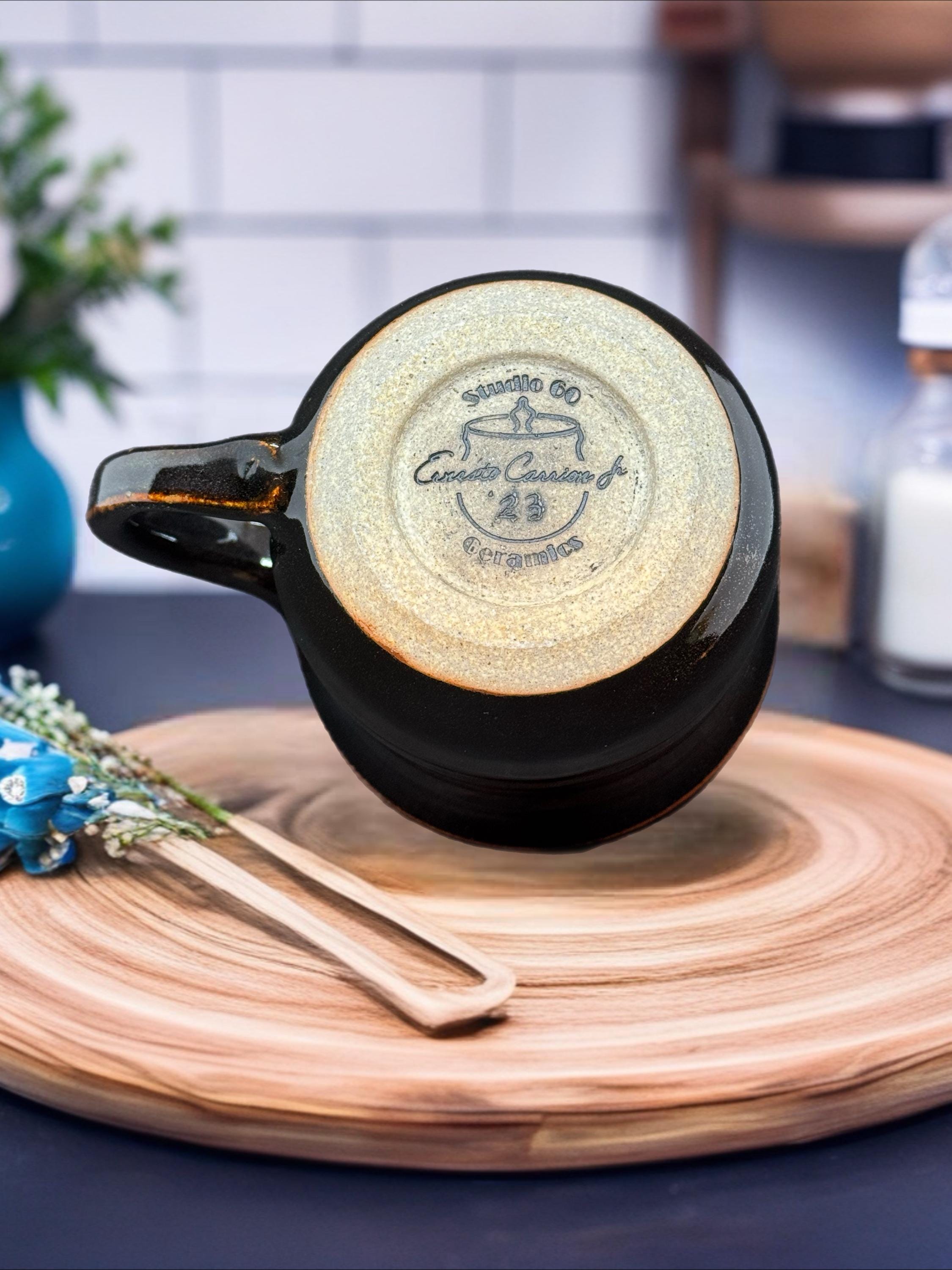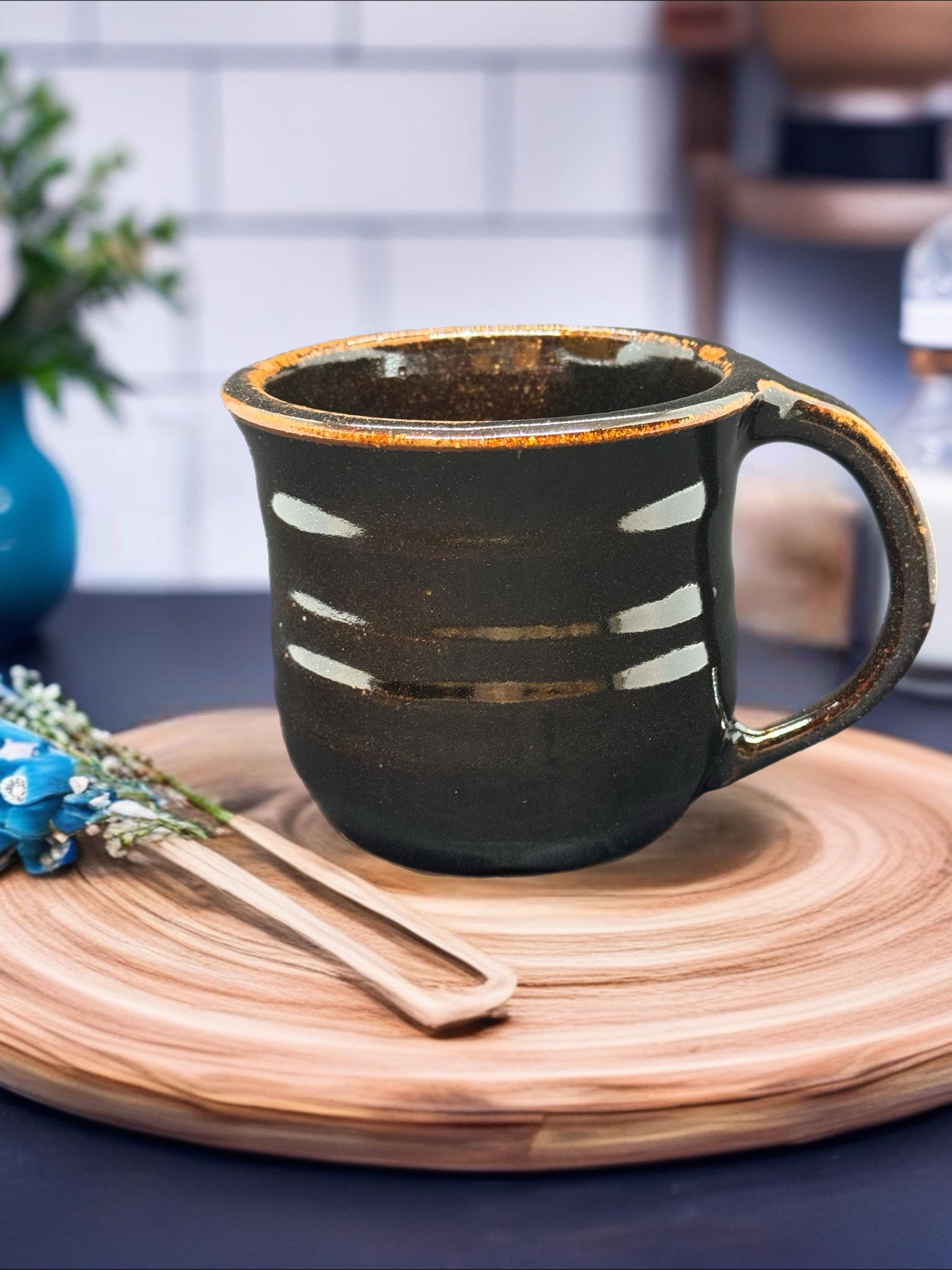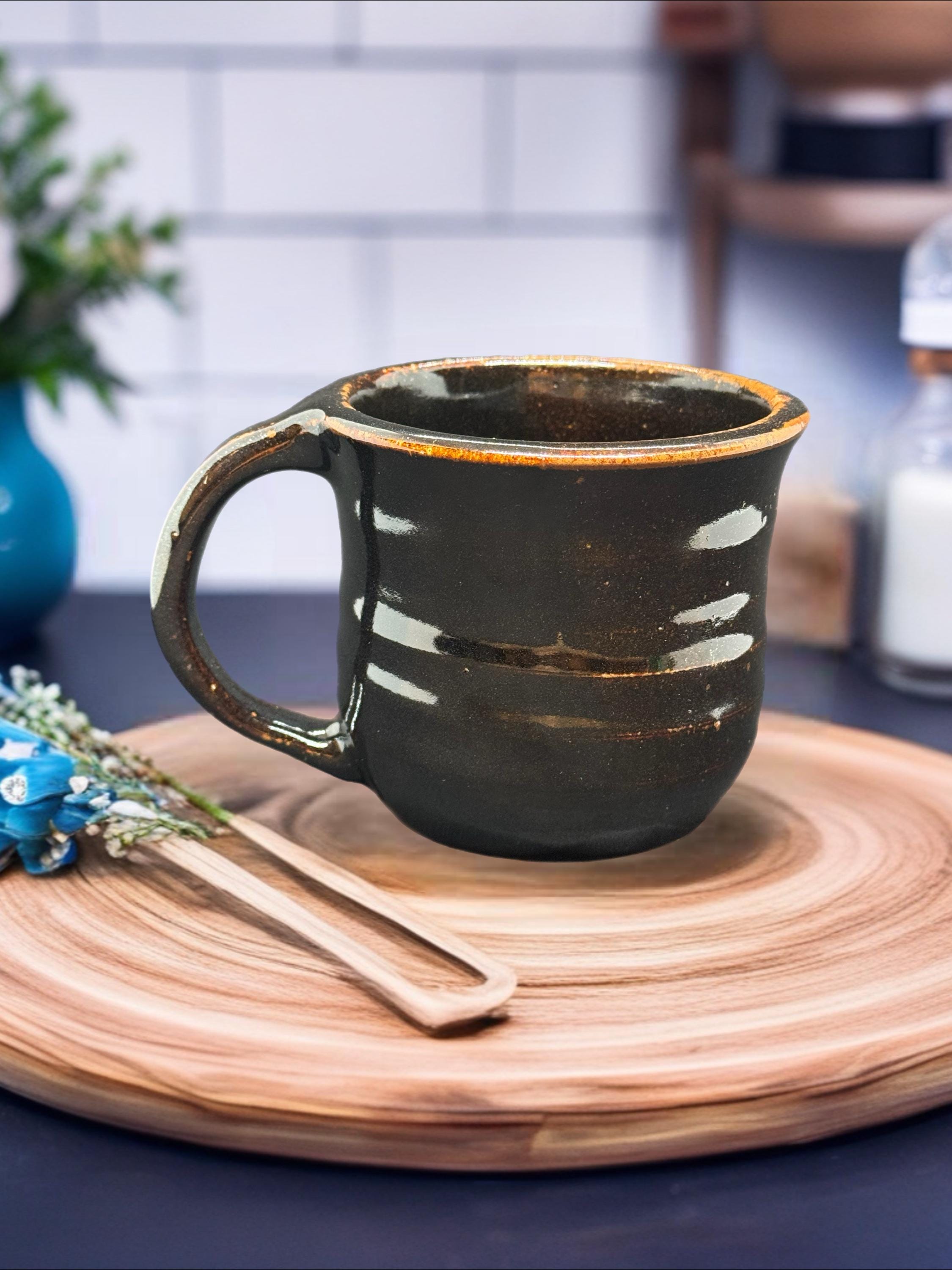 Handmade Black Pottery Mug: Gloss Glaze, Food Safe
