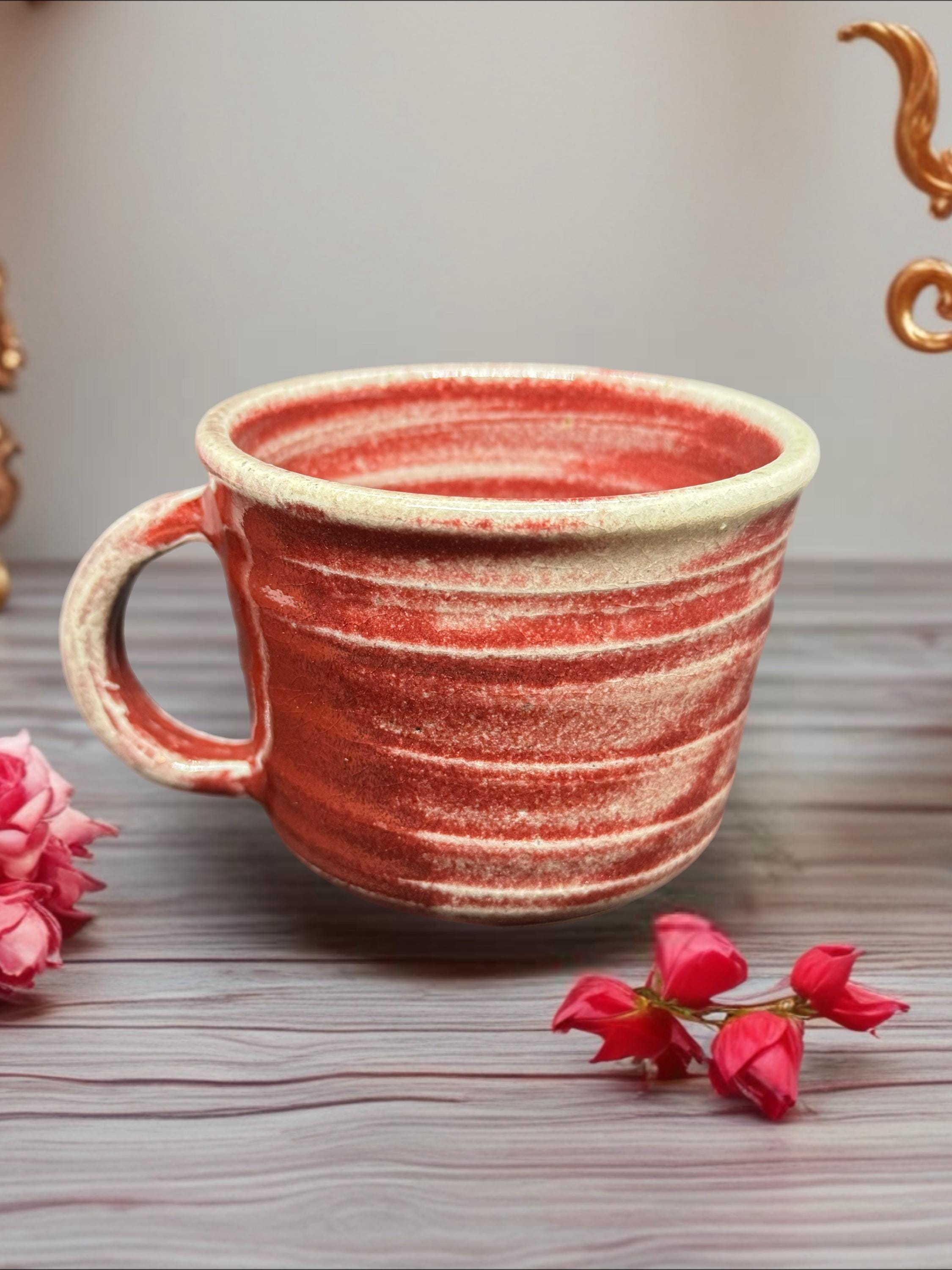 Handmade Red Pottery Mug: Glossy Glaze, Food Safe