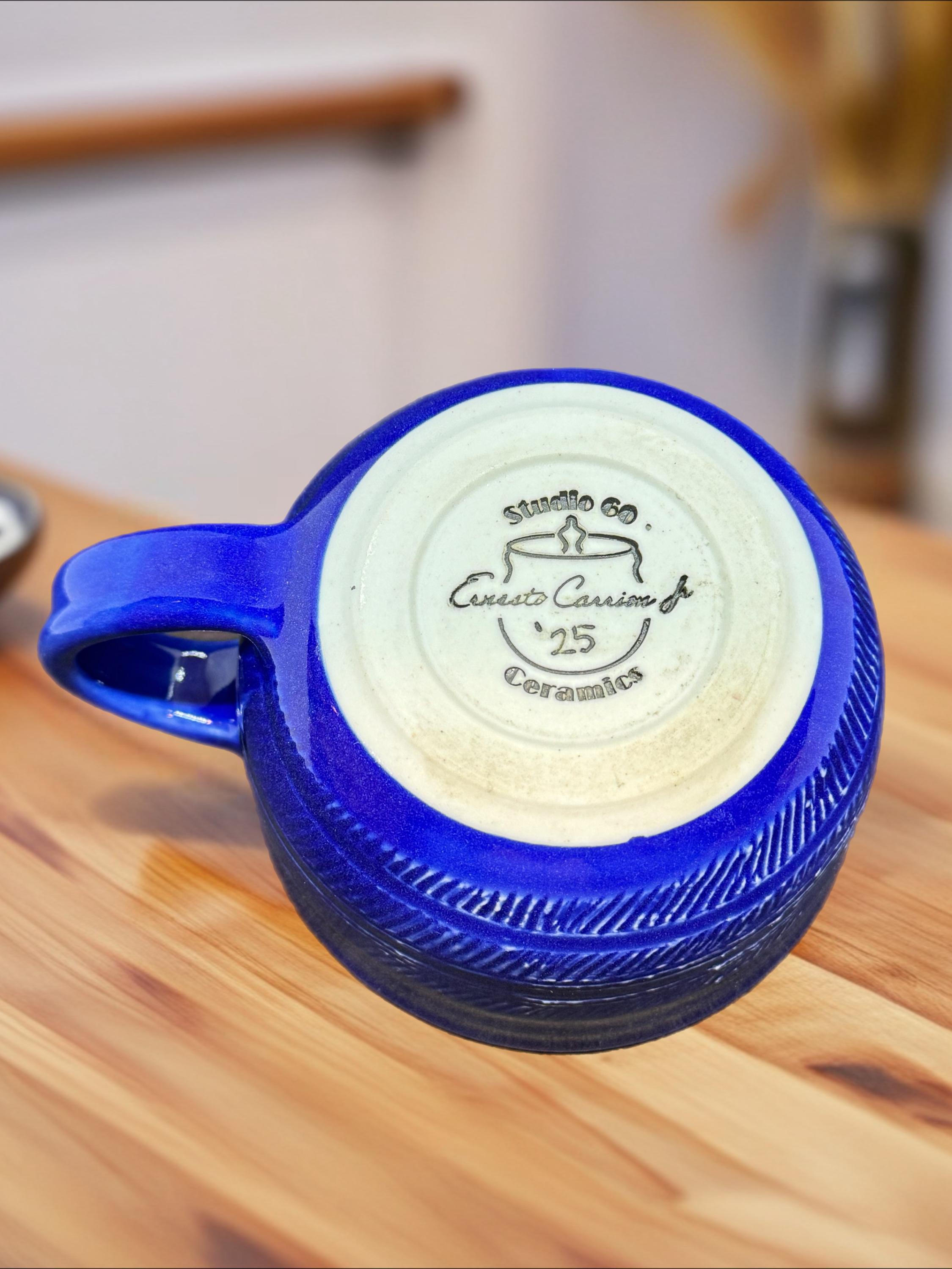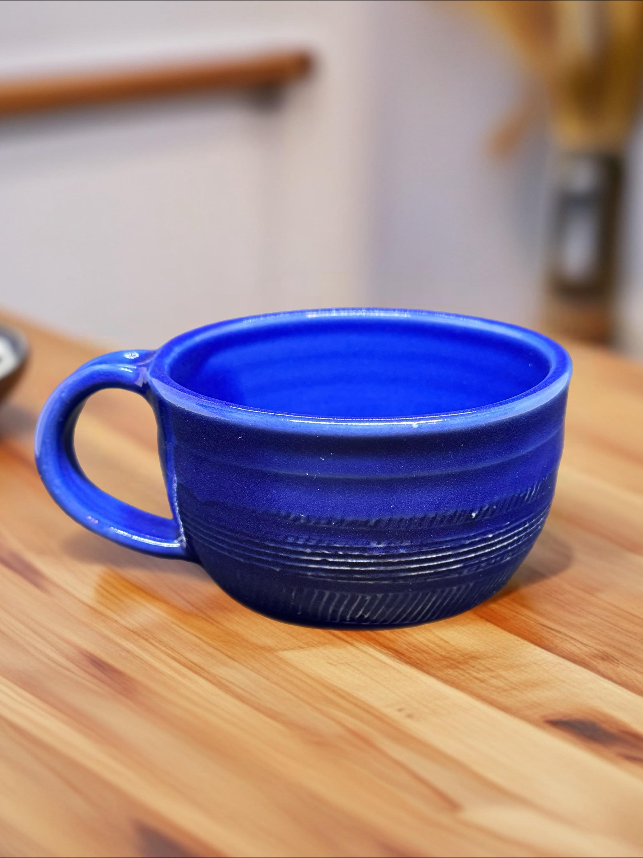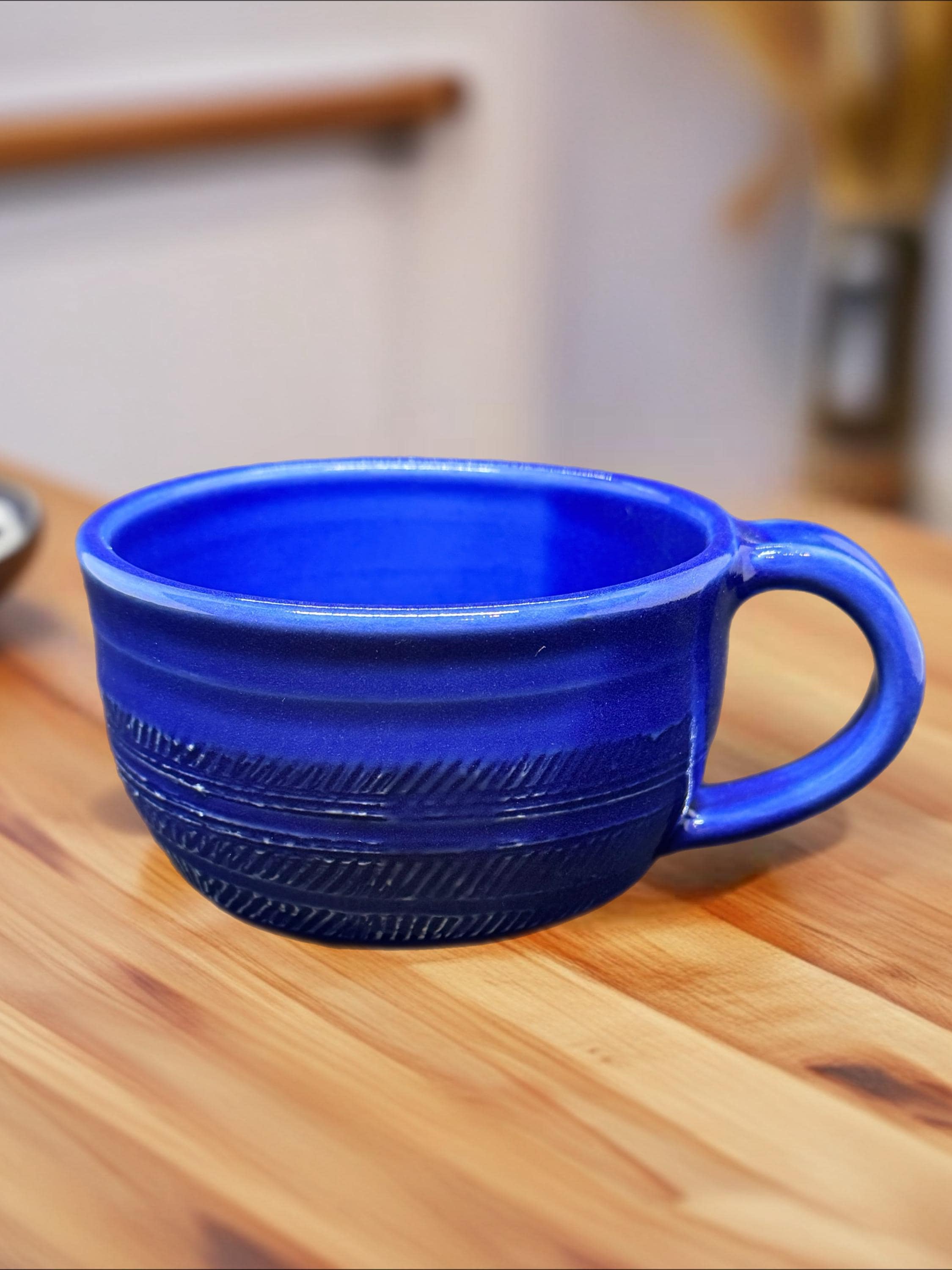 Handmade Blue Pottery Mug: Glossy Glaze, Food Safe