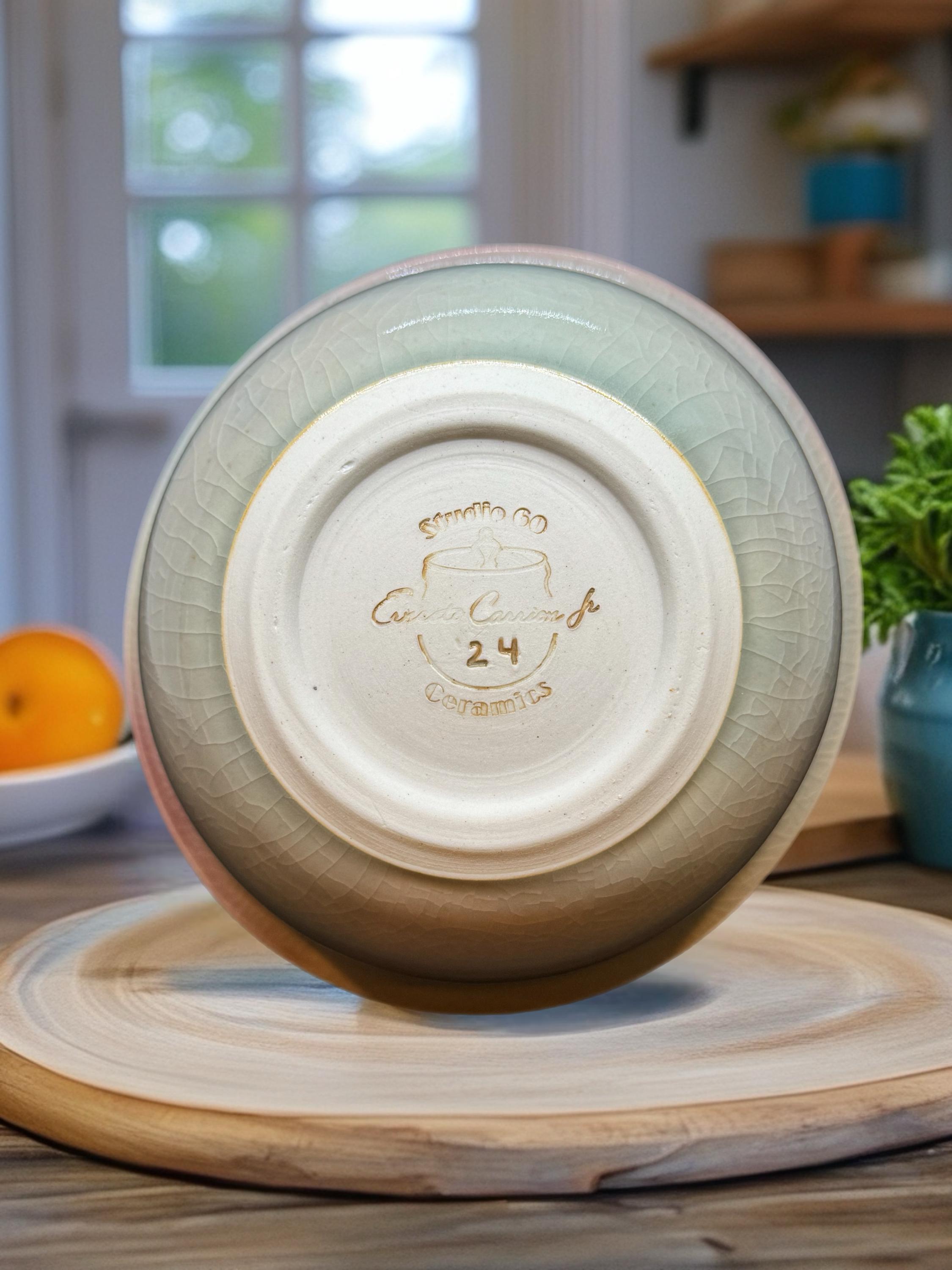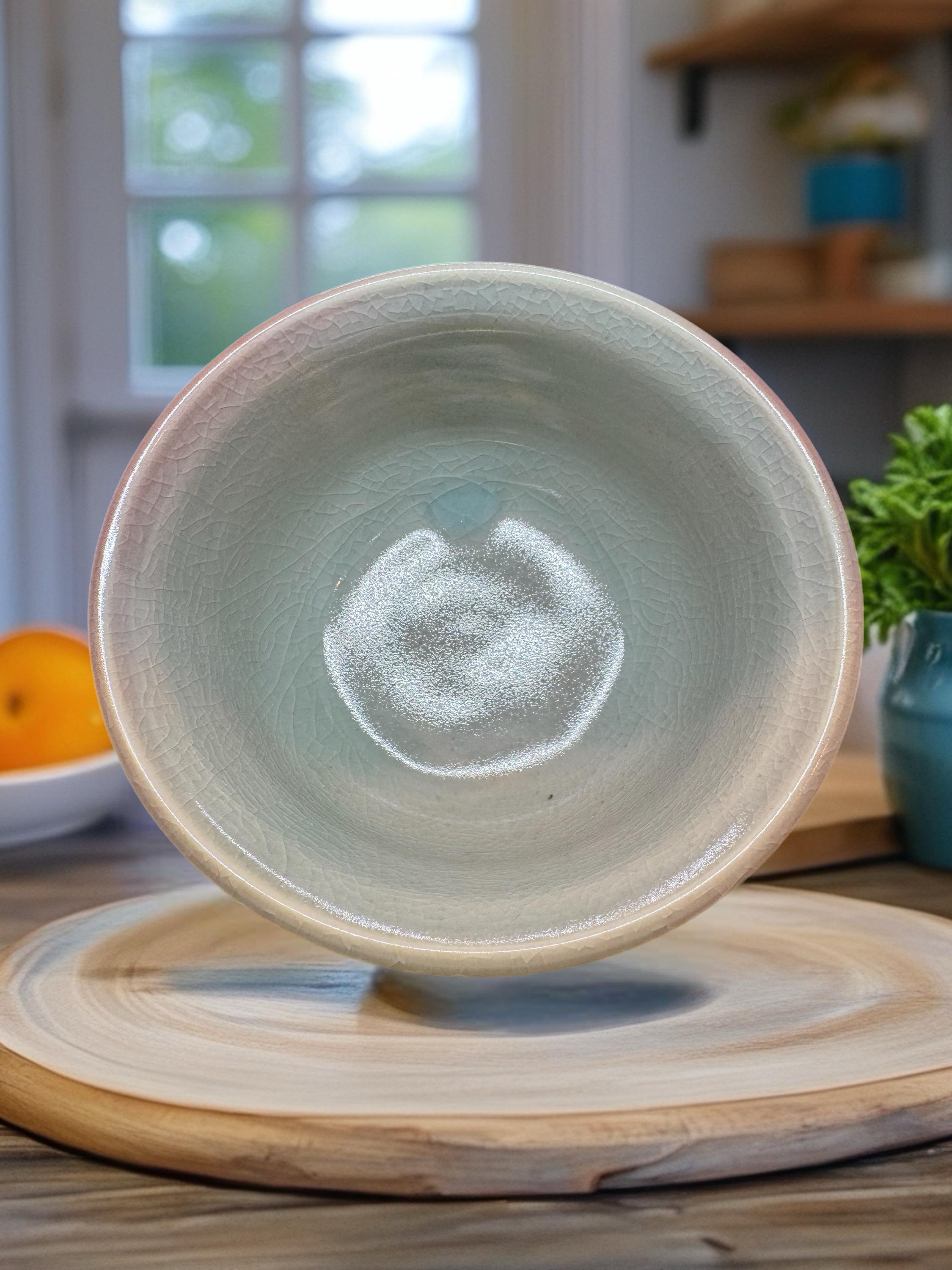 Handmade Celadon Pottery Bowl: Food Safe, Microwave Safe