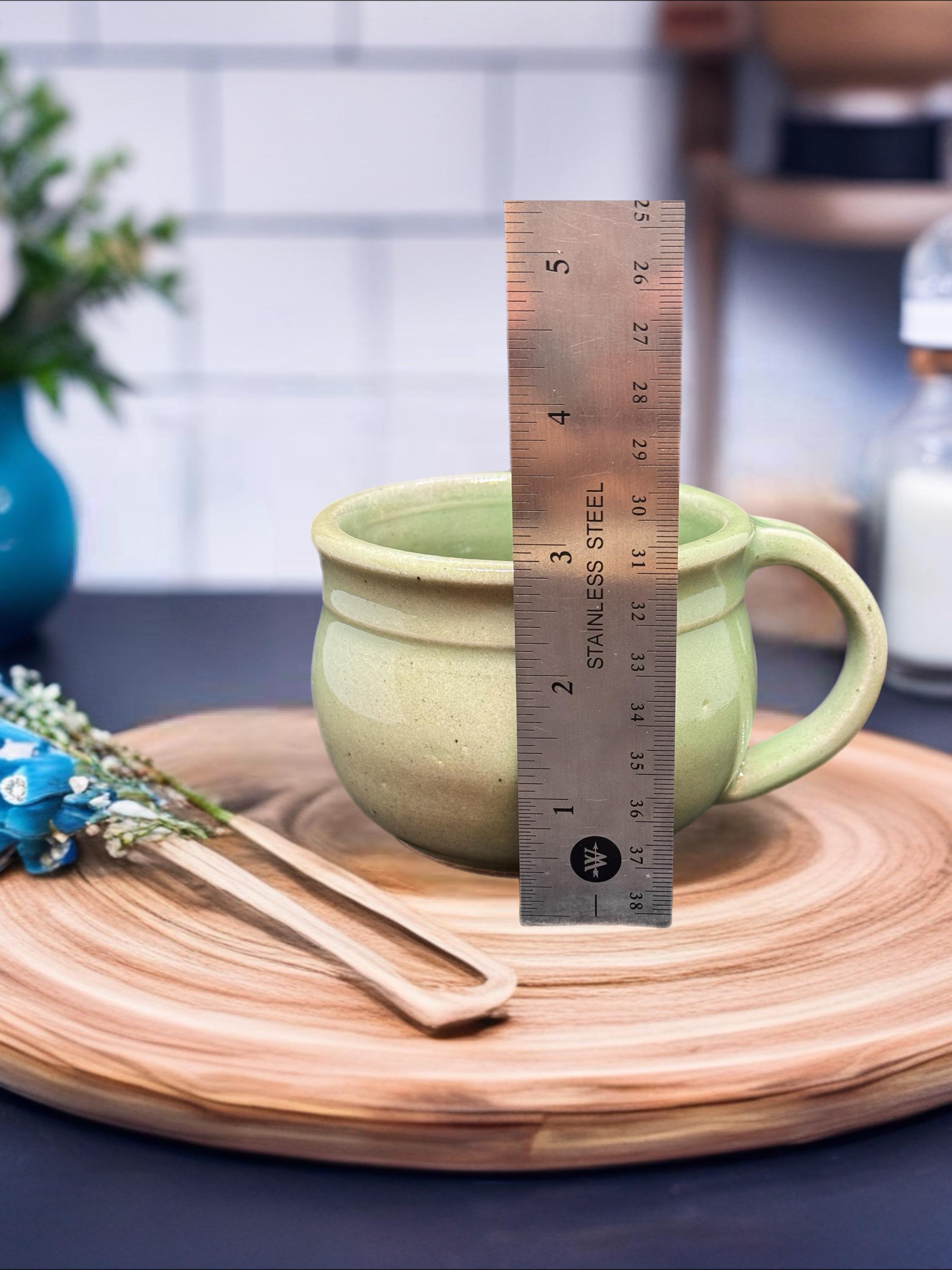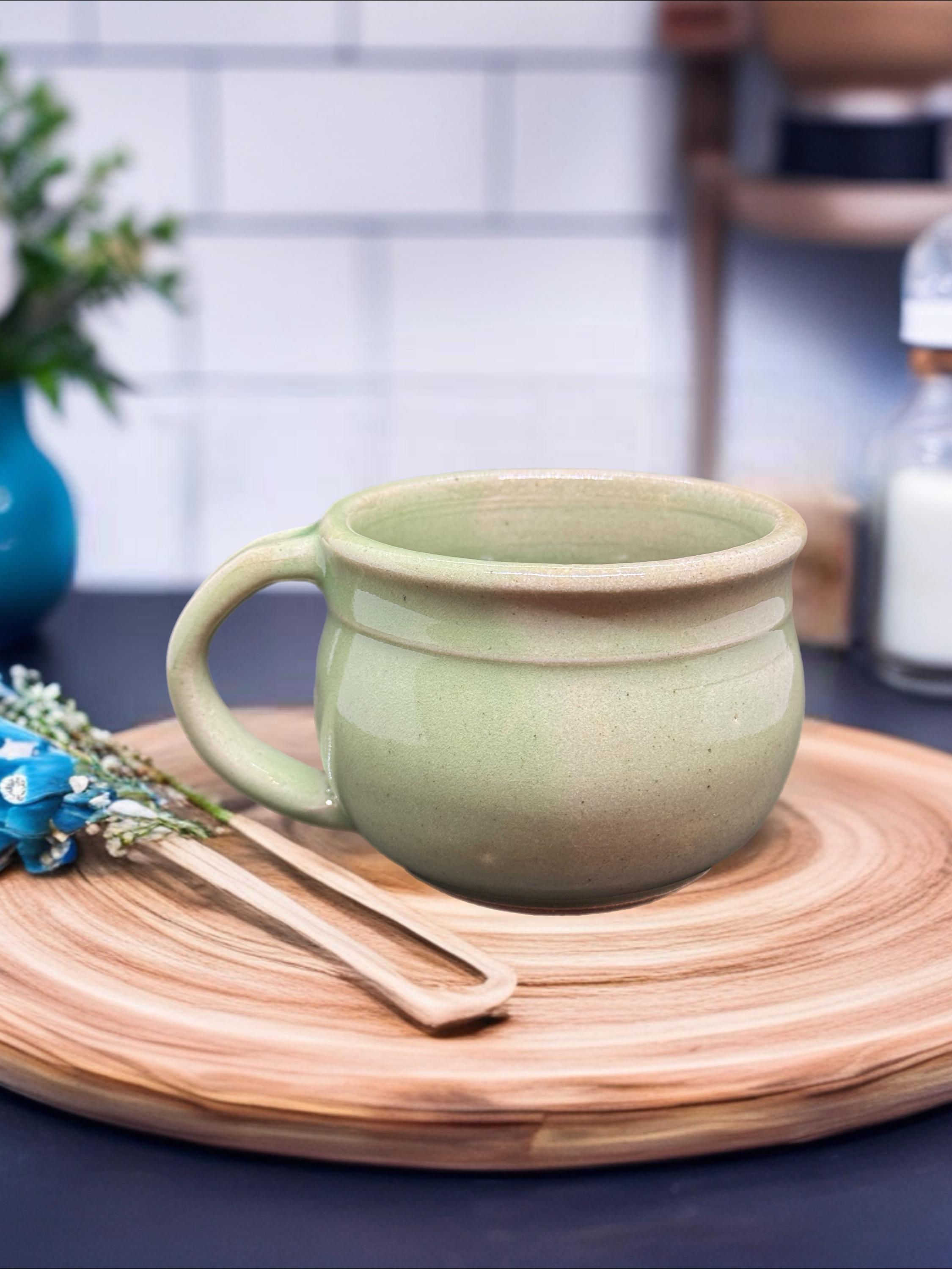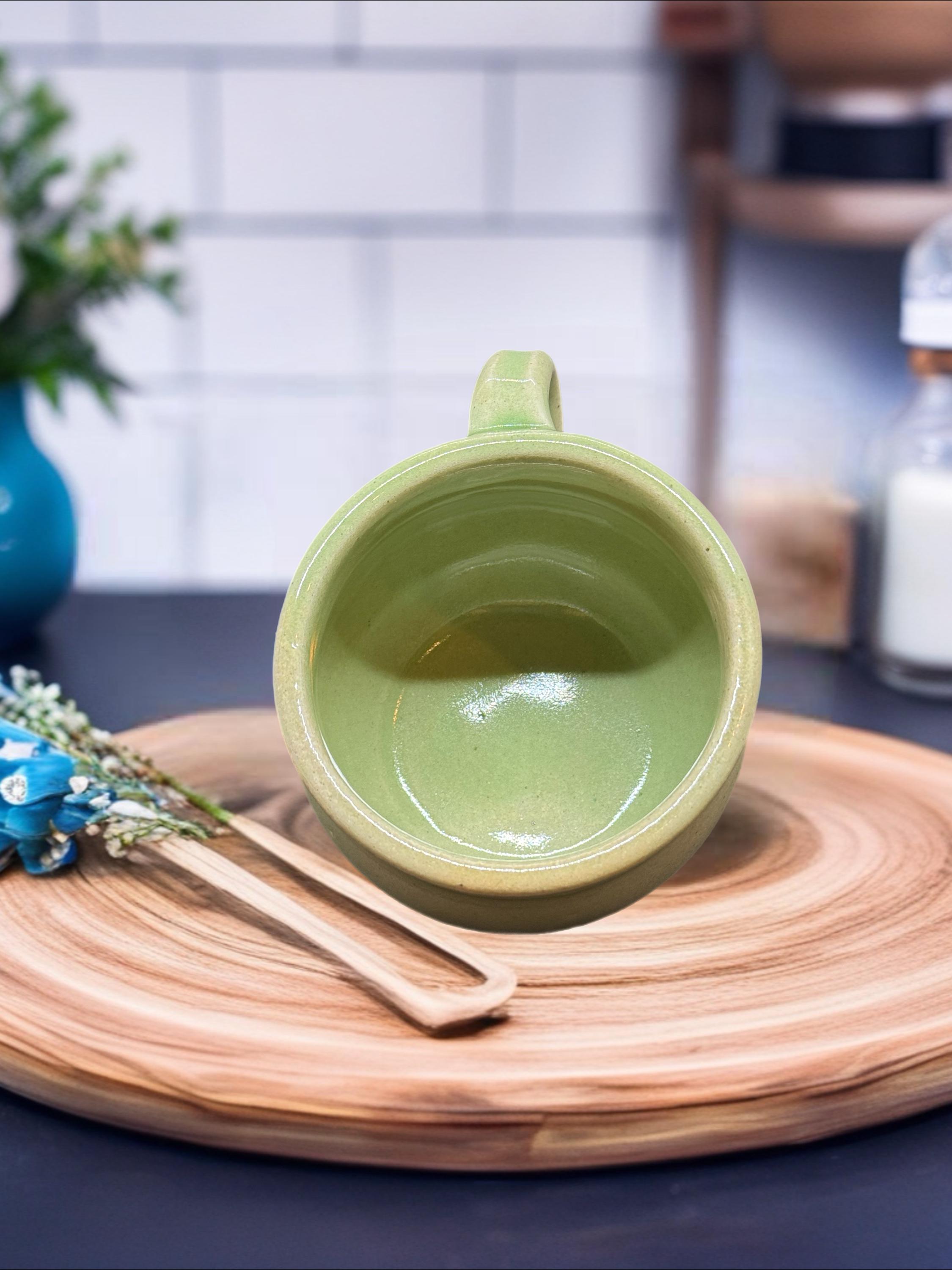 Handmade Green Pottery Mug: Glossy Glaze, Food Safe