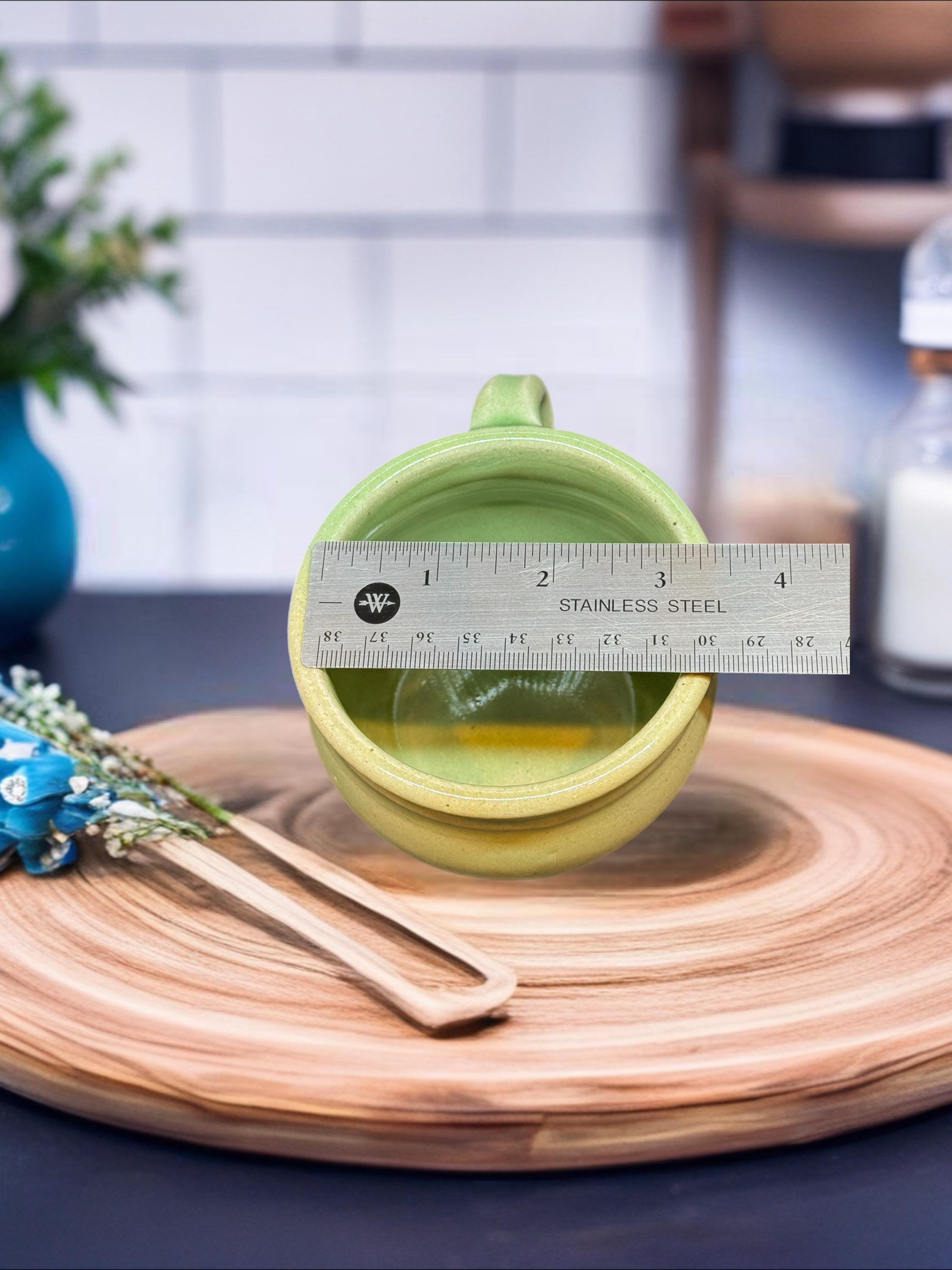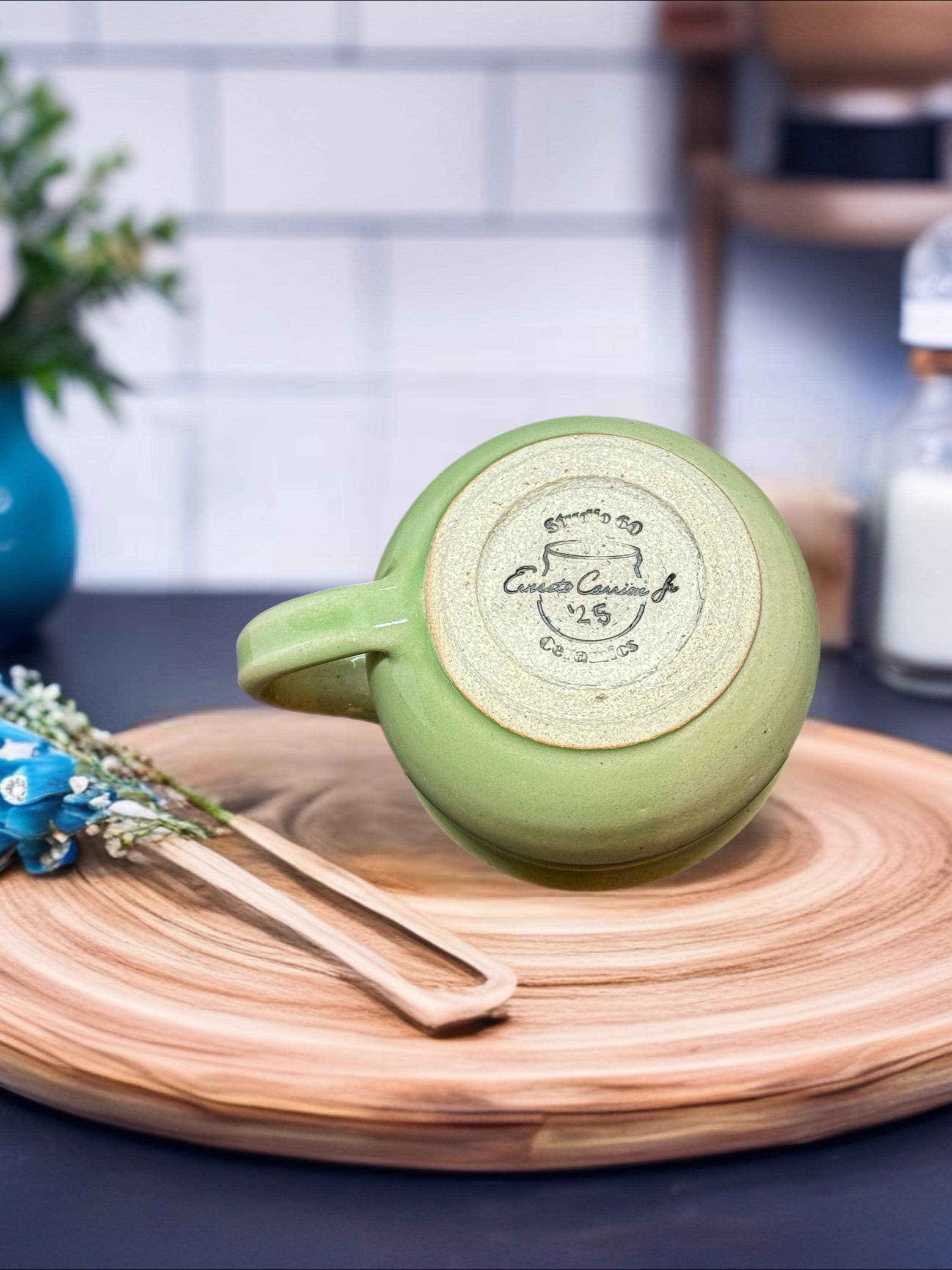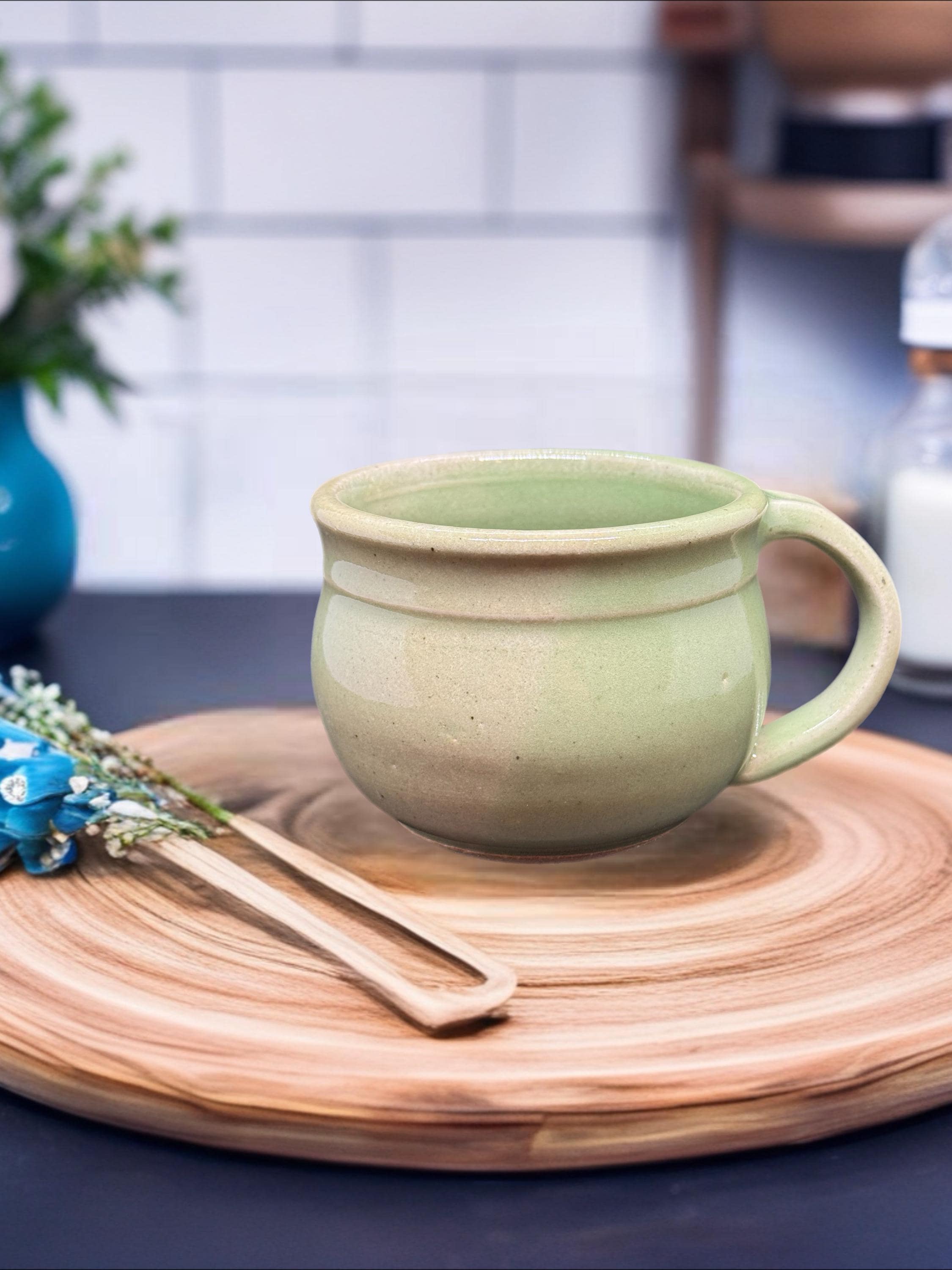 Handmade Green Pottery Mug: Glossy Glaze, Food Safe