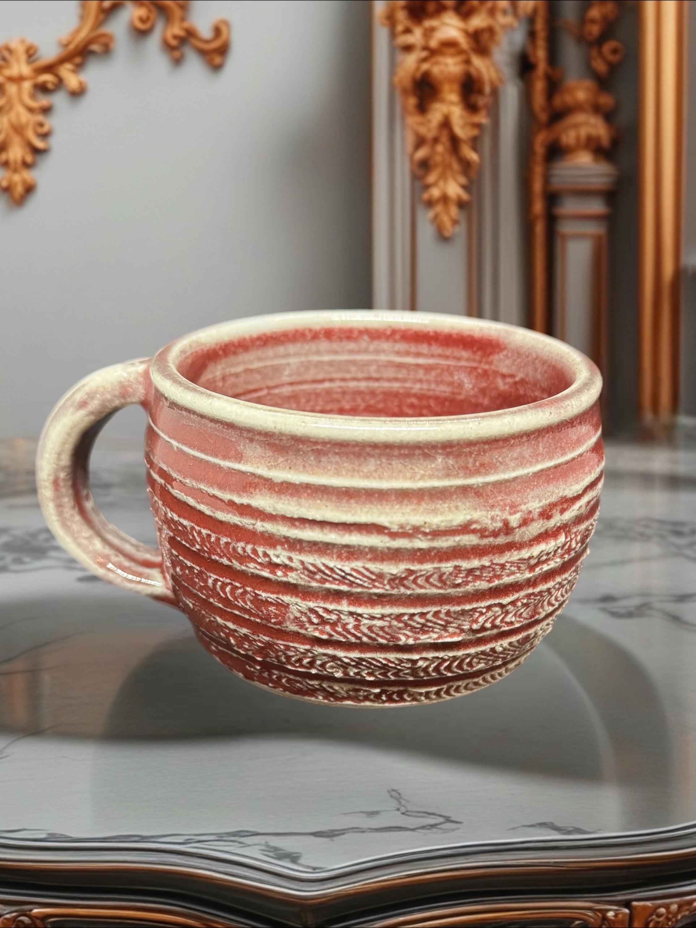 Handmade Red Pottery Mug: Glossy Glaze, Food Safe
