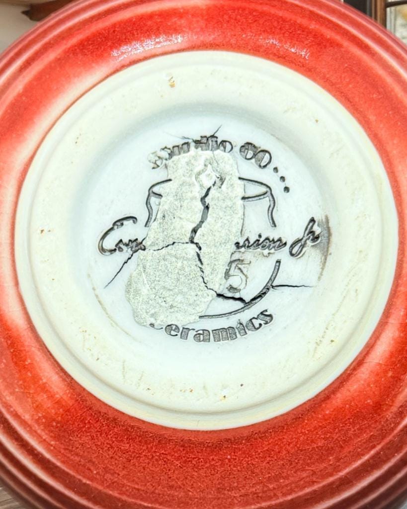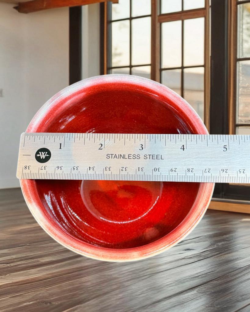Ox Red Cereal / Soup / Salsa Bowl with a small crack on the bottom of the bowl