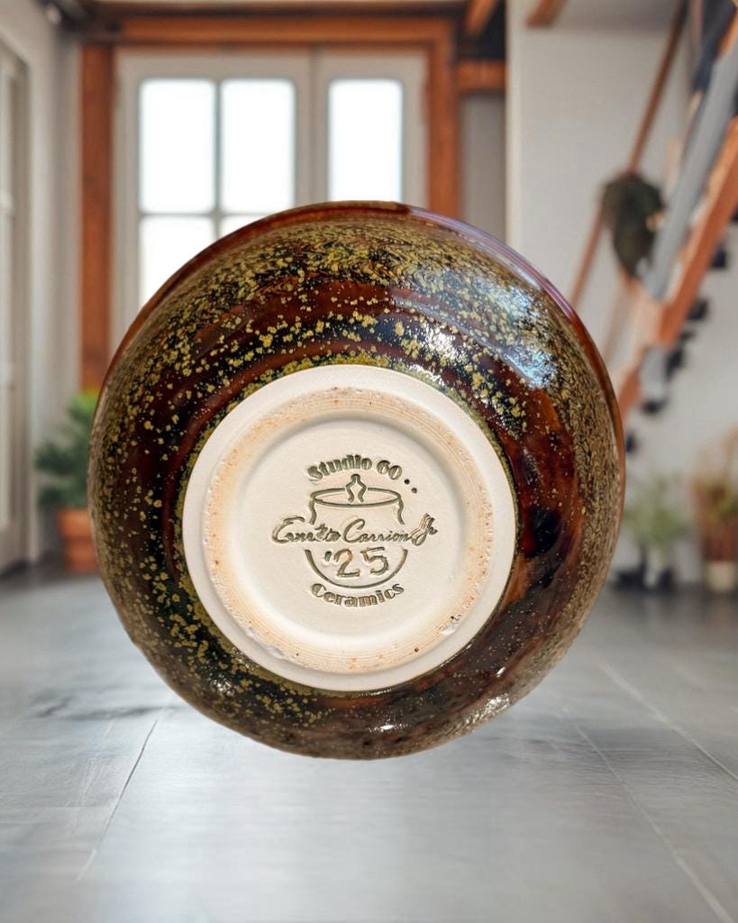 My name is Ernesto, I’m from Bakersfield, Ca. I am selling my beautiful one of a kind pottery items (bowls, mugs, vases, hunny pots). They are thrown off a pottery wheel with precision and care, and as you will see, they come in all shapes and sizes. Prices for each pot will vary. They all come with vibrant and glossy glazes that will please your eye and heart. Each of my pottery items are food safe, dishwasher safe, and microwave safe for your pleasure. I hope you enjoy my pottery as much as I love making them. Please note: All listed measurements (width and height) are approximate. For more accuracy, reference the photos, which include a ruler placed next to or on top of the item. I'm still learning the ins and outs of listing items on Etsy, especially when it comes to shipping and handling. I'm actively working on streamlining this process to ensure everything is fair and affordable. If you notice a shipping cost that seems unusually high, please don’t hesitate to reach out. I’m happy to review it, and if it turns out to be too costly, I’ll work with you to offer a partial shipping refund.