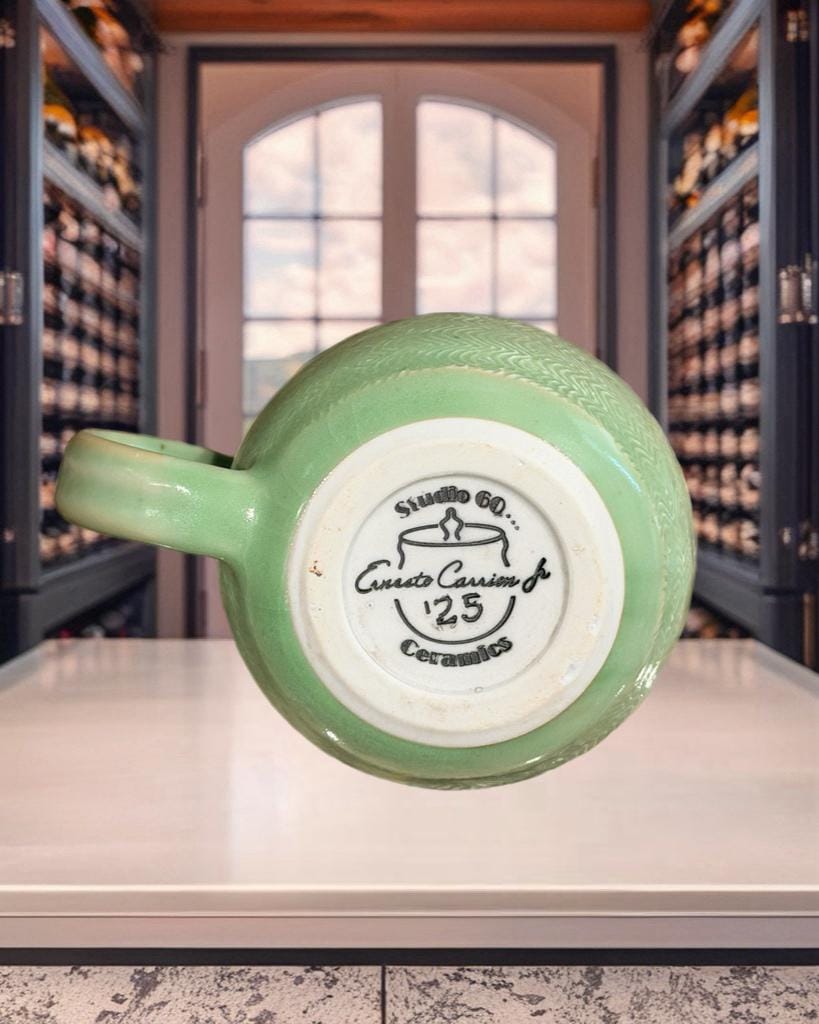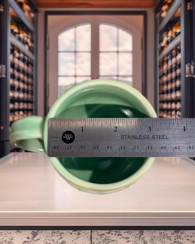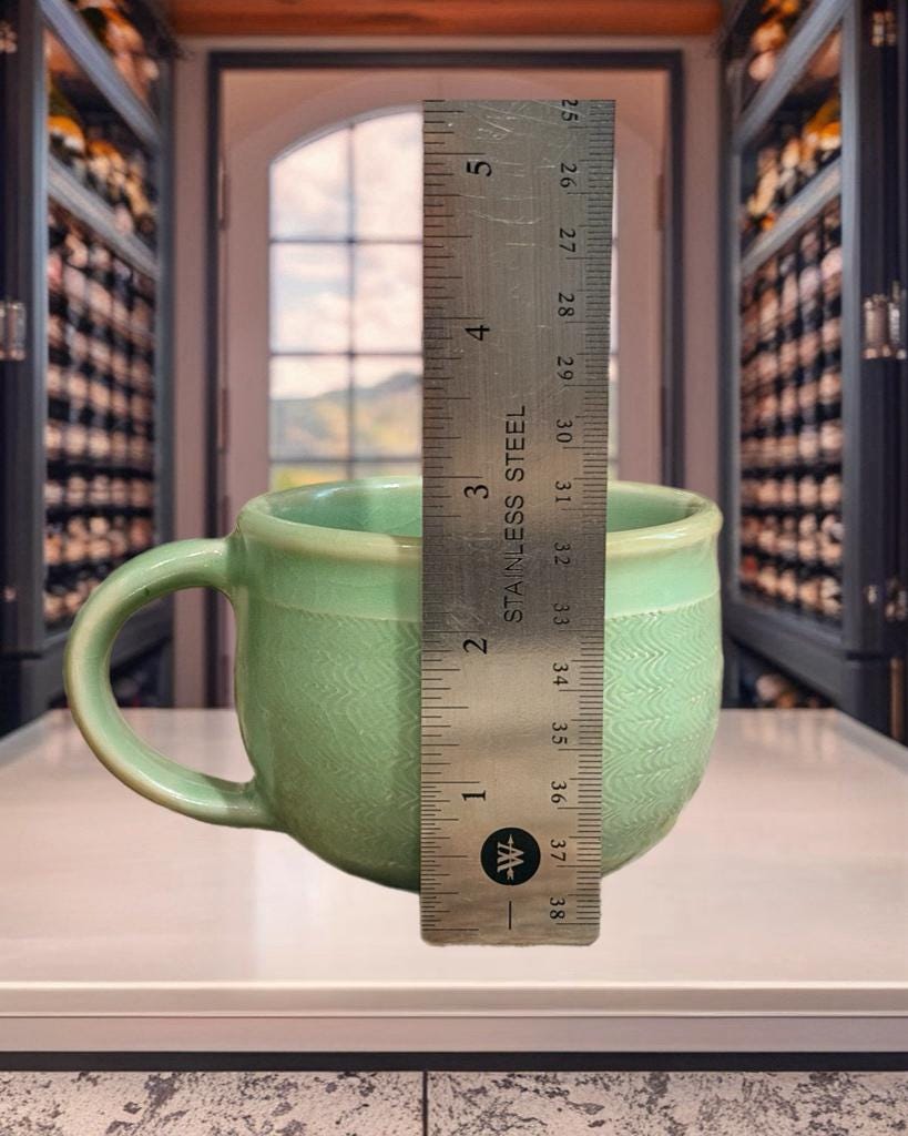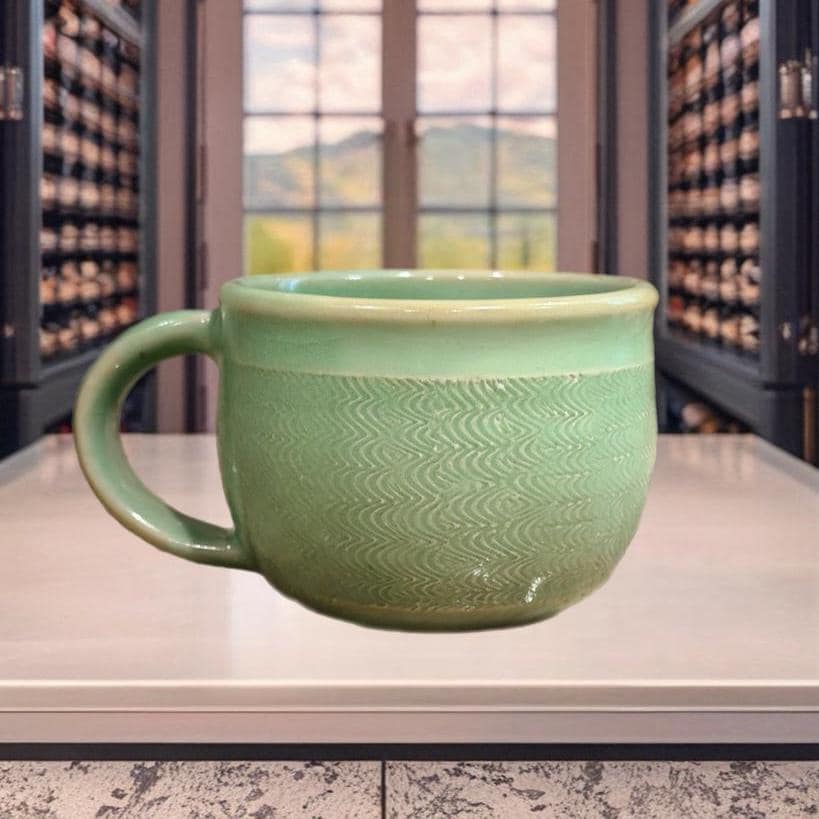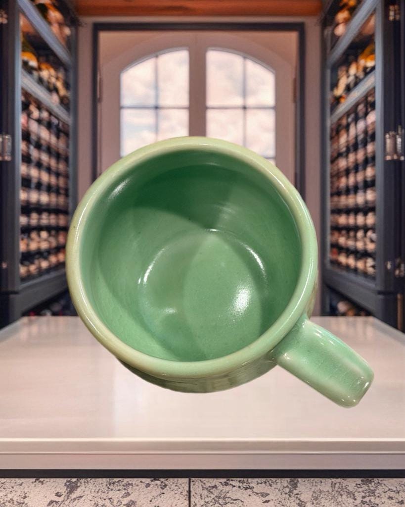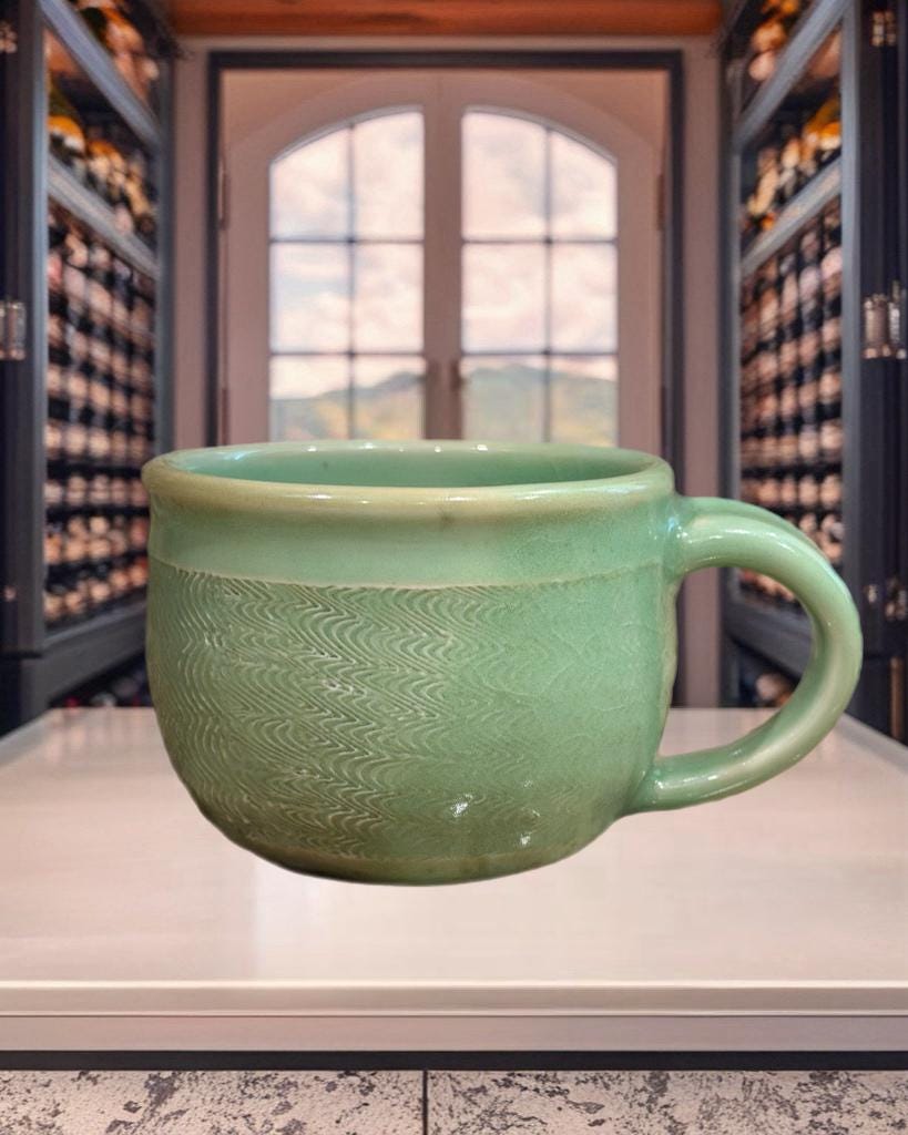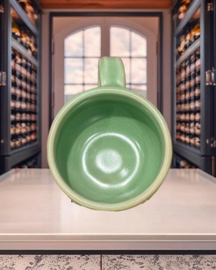 Espresso-Handmade Green Pottery Mug: Glossy Glaze, Food Safe